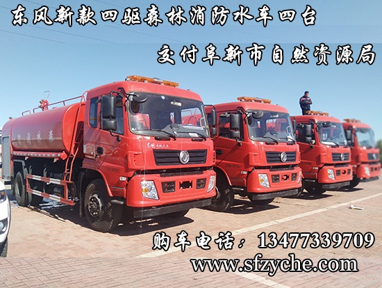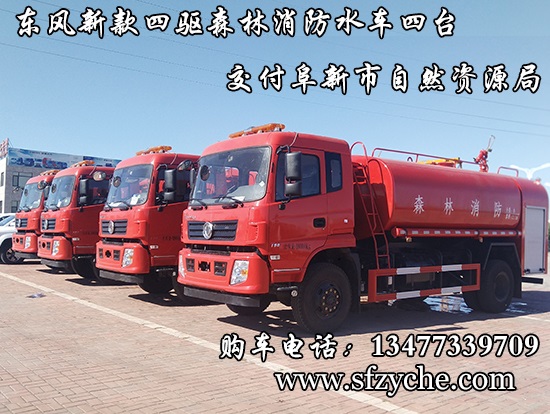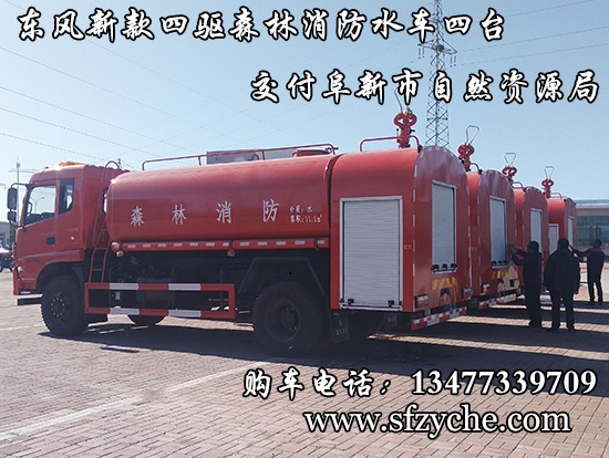 遼寧省阜新市自然資源局下屬的林業(yè)和草原局森林防火辦公室采購的東風(fēng)新款四驅(qū)森林消防水罐車具體參數(shù):東風(fēng)四驅(qū)越野森林消防水罐車_東風(fēng)11.1噸四驅(qū)消防水車_國五四驅(qū)越野森林滅火水車_東風(fēng)4×4越野SCS5183GPSEQ型四驅(qū)綠化噴灑車簡介:采用東風(fēng)EQ2180GD5DJ型越野汽車底盤,東風(fēng)153寬體駕駛室(選裝D913新款駕駛室),4×4驅(qū)動,康明斯ISB190 50國五發(fā)動機(jī),六檔變速箱,東風(fēng)商用車橋,前驅(qū)動橋3.8噸,后橋10噸,10.00R20輪胎,軸距4500mm,電動玻璃,方向助力,斷氣剎,ABS。罐體采用優(yōu)質(zhì)碳鋼Q235板材,板材厚度4mm,罐體容積11.1立方,安裝夾心取力器,后置泵箱,消防栓接口左右各一個(gè),消防炮采用PS30-50D消防水炮,流量40L/S/1.0MPa 水射程:≥50m,消防泵采用常壓消防泵型號:CB10/40車用消防泵,流量:40L/s,壓力:1.0MPa,駕駛室頂部安裝長條警燈帶喊話器,全車顏色橘紅,兩側(cè)噴涂白色森林消防字樣。