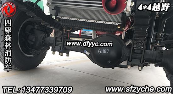 東風(fēng)四驅(qū)雙排多利卡消防灑水車底盤配置:采用東風(fēng)四驅(qū)越野底盤EQ1070NLJ,康機140馬力ISB3.9-140E40A國四發(fā)動機,東風(fēng)軍用2.8噸前驅(qū)動橋,6噸后橋,多利卡雙排駕駛室,五檔變速箱,8.25R16鋼絲胎、軸距3800mm,隨車工具及備胎一套。