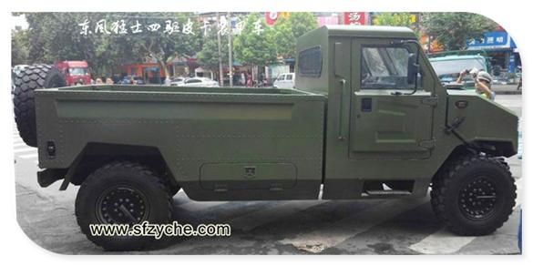 上面是東風猛士四驅(qū)皮卡是在1代猛士裝甲研發(fā)的同時,根據(jù)部隊需要而全新開發(fā)的一款“短頭”多功能運輸車。雖然采用的是猛士的底盤,但是動力艙的布局和駕駛艙的設定都是全新開發(fā)。軍方對猛士的要求很明確:較悍馬在承載能力提升17%。可通過伊爾76空運、空投。在人員物資滿載的工況下動力提升25%。三大總成全部國產(chǎn)化,制動性和穩(wěn)定性滿足軍方要求。“短頭”載具具備空間優(yōu)勢可擴展戰(zhàn)術(shù)能力。“長頭”(即標準型)改裝潛力大,可滿足多軍種使用需求。為加大作戰(zhàn)半徑,油耗要能降低30%,續(xù)駛里程要提高50%。要適應更惡劣的氣候條件、更復雜的地理環(huán)境,提高電子通信能力。舒適性、平順性、耐久性都要有所突破,并在具有較長的全壽命周期(15年)。