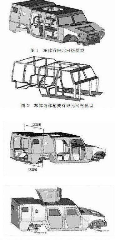 上圖是1代猛士裝甲車車身結(jié)構(gòu)簡圖(由于長軸2代猛士仍然處于測試狀態(tài),引用1代猛士裝甲車結(jié)構(gòu)進行比對說明),為了提升整車鋼性以及安全防護能力,上部分的車身焊接采用單獨全封閉結(jié)構(gòu)(側(cè)圍、頂蓋、地板預先焊裝一體)。在A/B/C/D柱之間焊裝多條加強筋保證縱向結(jié)構(gòu)強度。與美軍現(xiàn)役悍馬裝甲車(通過對基型車換裝裝甲板)不同的是,1代猛士裝甲車原廠狀態(tài)就采用可防護7.62毫米口徑穿甲彈在100米內(nèi)全向攻擊、12.7毫米口徑機槍彈正面攻擊、3公斤TNT當量爆炸物地面攻擊、以及105毫米口徑榴彈破片50米內(nèi)攻擊的均質(zhì)裝甲板。