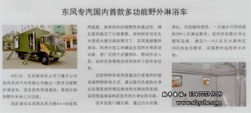 > 新聞中心 > 技術(shù)文獻 > 東風專汽推出國內(nèi)首款東風四驅(qū)多功能野外淋浴車