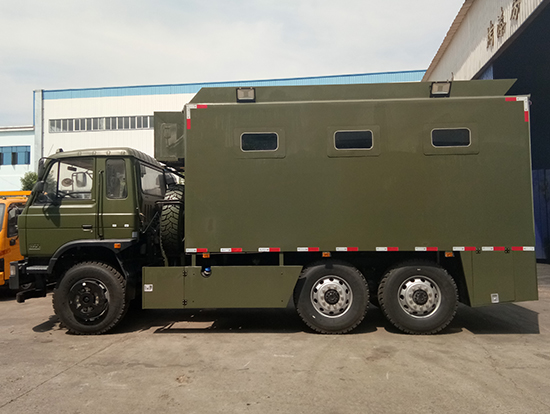 相關車型東風國五六驅越野自行式炊事車_東風軍用六驅炊事車_六驅野戰(zhàn)自行式餐廚車為部隊提供一種機動、高效的專用現(xiàn)場飲食保障裝備,滿足部隊平時及野外值勤時的主副食的飲食保障工作,并解決部隊行進中不停車做飯菜的需要及供應飲用水的需求。六驅自行炊事車功能簡介:該裝備主要編配于部隊,為部隊官兵野外作業(yè)時提供良好的飲食保障:具有制作食品、保溫食品和儲存食品的空間與功能、并具有提供開水和餐具消毒的功能。